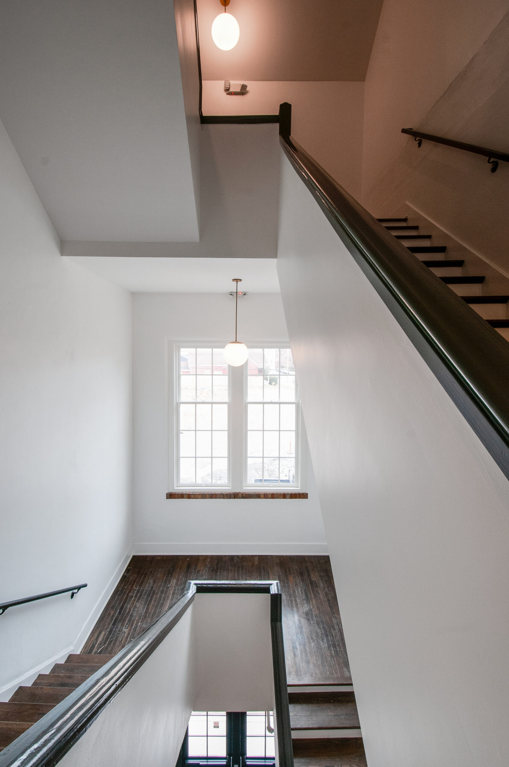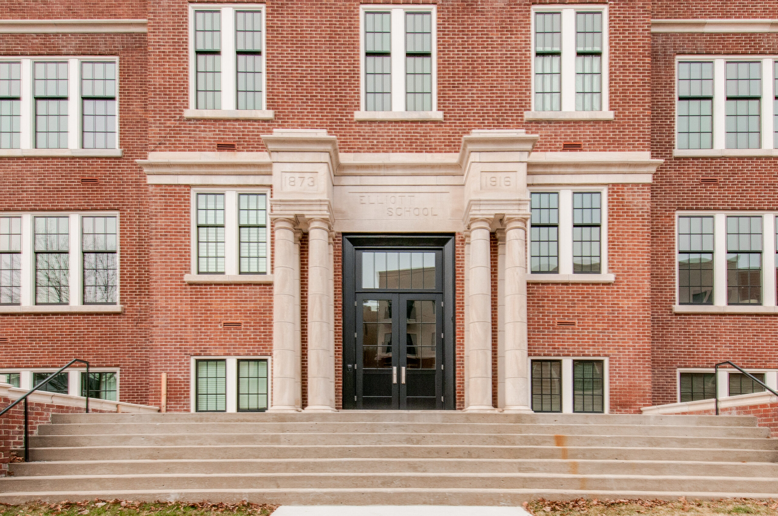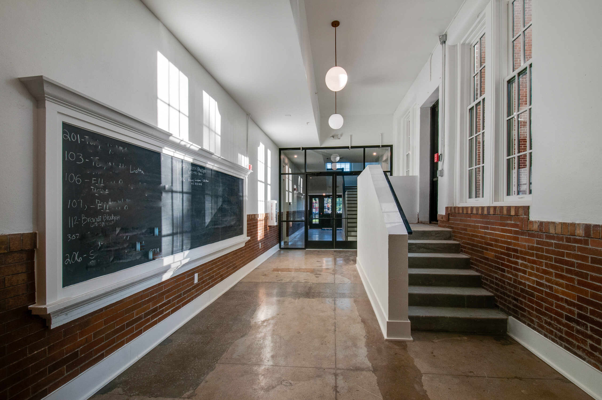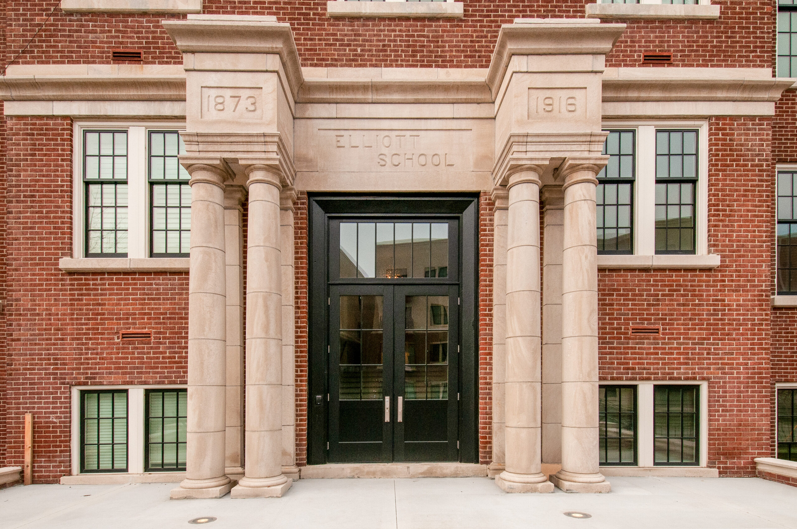 MZA partnered with The Mainland Companies to convert Germantown's landmark Elliott School into 26 thoughtfully designed condominiums. Constructed in 1916 by noted architects Marr & Holman, the building remained vacant and unattended before being partially reused as offices. The question was how to make it livable for the 21st century without sacrificing its historic character. Working in close consultation with preservation agencies and the community, MZA restored original hardwoods, plaster, and masonry while making new additions unobtrusive. Most striking is the renaissance of the two-story auditorium, now occupied by three dramatic loft-style residences. Having survived a direct hit from the 2020 tornado, the building's resilience was matched only by the care that went into its restoration. The result is a flagship example of adaptive reuse that weds Germantown's heritage to modern living.