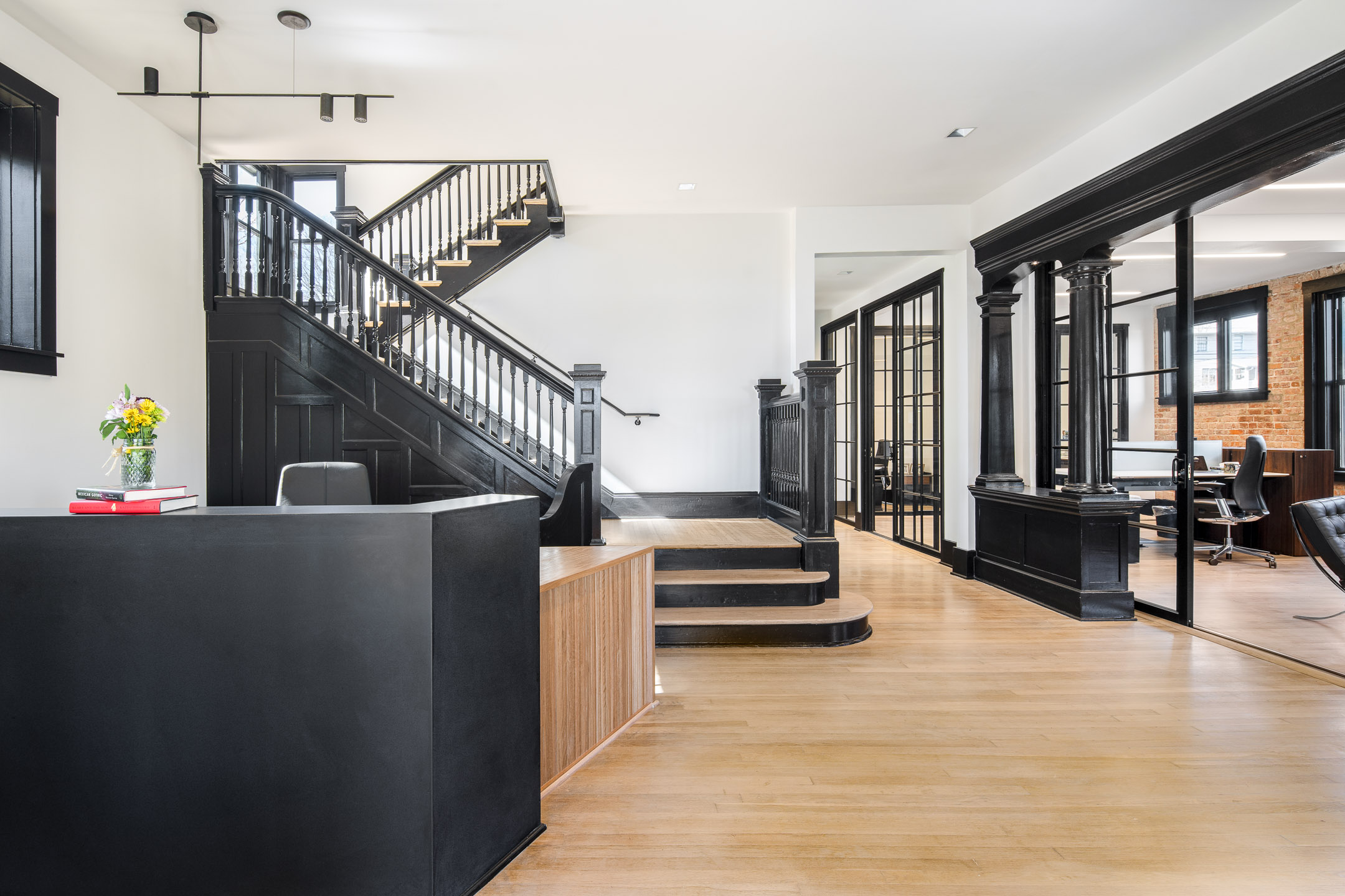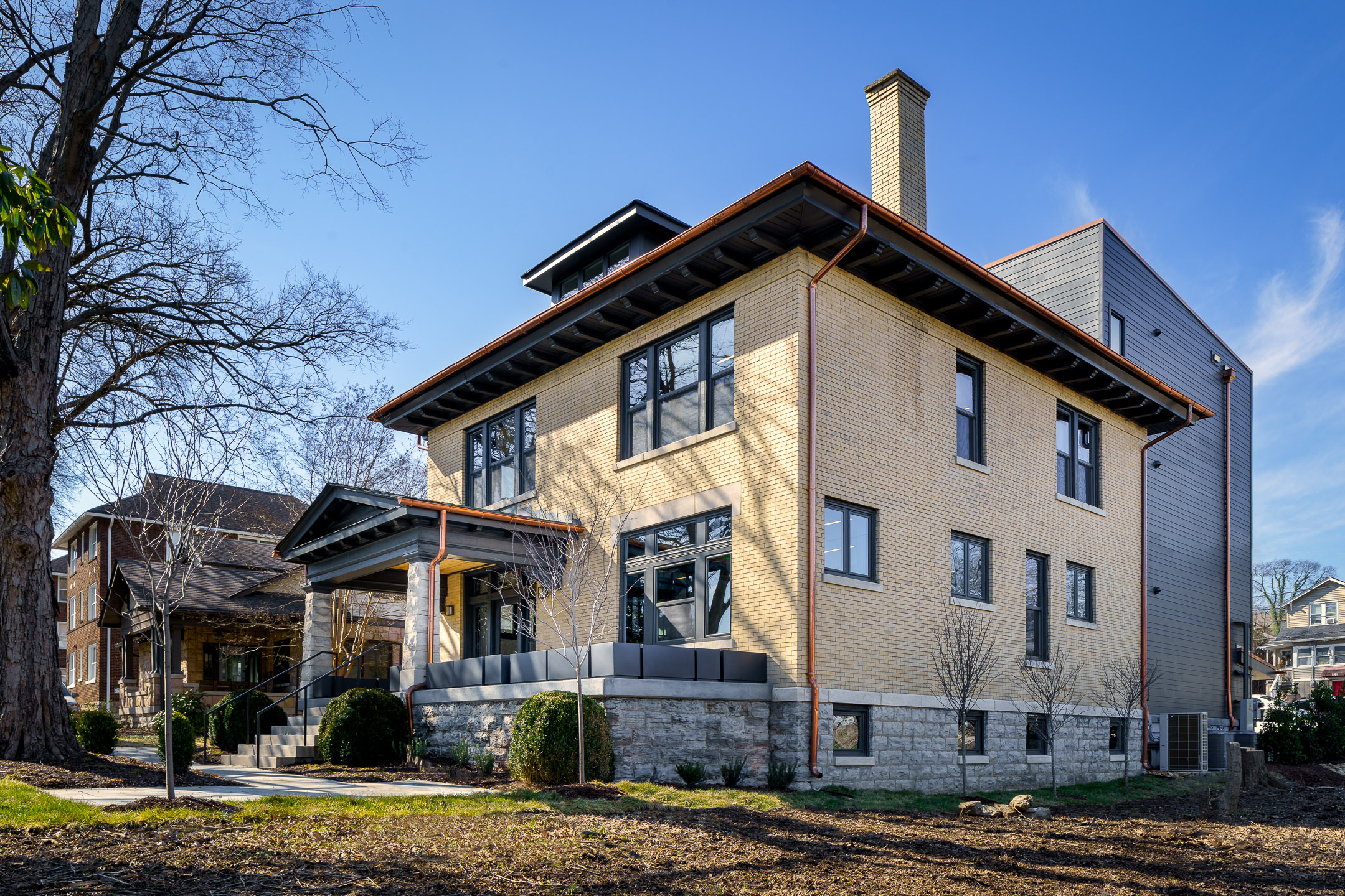 HailSolve approached MZA to give new life to a deteriorated 1920s foursquare in Music Row's neighborhood of Nashville. Once a proud home, the structure had weathered years of disrepair, leaking roofs, broken windows, and a creaking frame. The restoration preserved the home's historic integrity while transforming it into a modern office. Similarly key original features like the sweeping staircase and leaded glass front entrance were meticulously restored. Brick walls were revealed and capped, oak floors sanded to a high gloss, and a long-neglected attic was reimagined as habitable space connected to a new rear addition. Every eccentric angle was revered rather than eradicated. The result is an energetic, rehabilitating reuse that honors the building's past while satisfying 21st-century needs. A jewel in the community today, the project sets a shining example for preserving Nashville's architectural legacy.