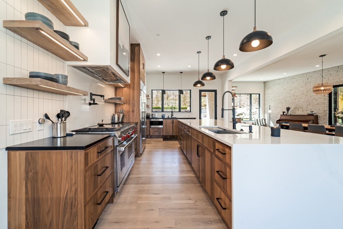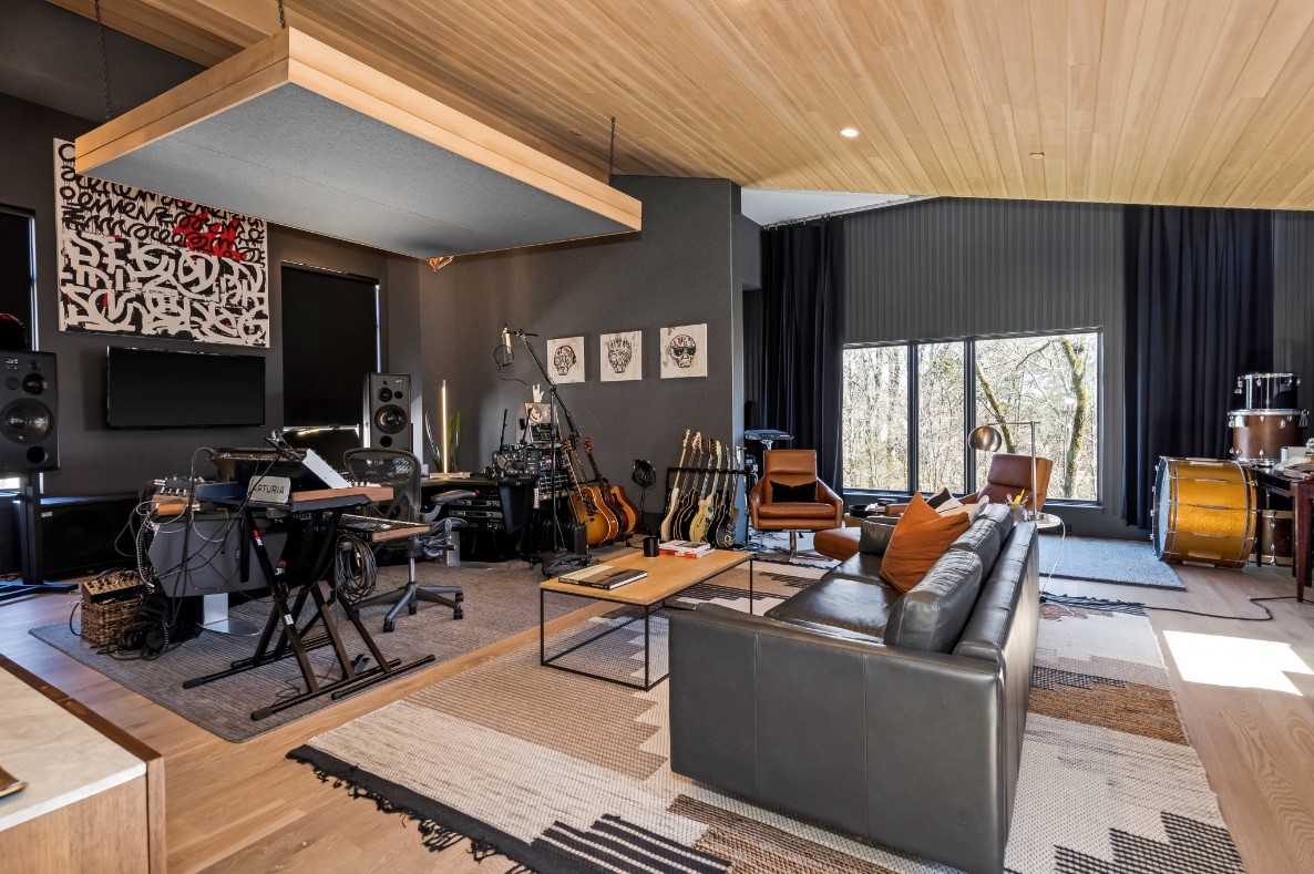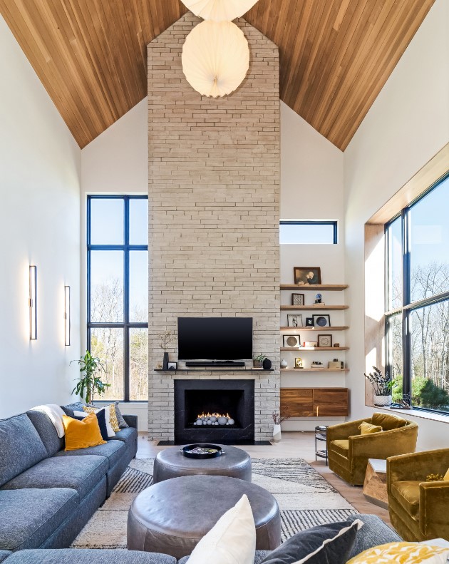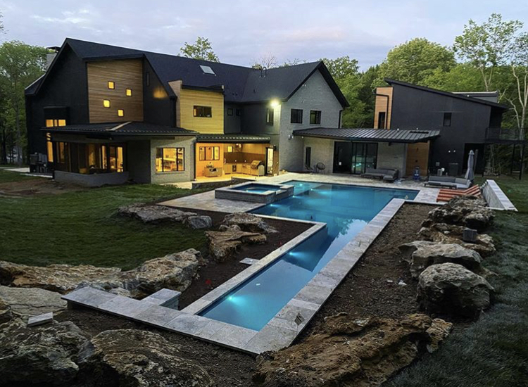 Situated on four wooded acres in Brentwood, TN, the House on Sunset strikes a balance between family living, creative work, and playful design. MZA was tasked with designing a home for five family members, one of whom is a professional musician in need of a private recording studio. The challenge: blend high-functioning interiors with a relaxed, retreat-like feel. MZA's layout included whimsical details like a secret stair to a child-oriented attic lounge, rectangular windows tracking sunlight along vaulted ceilings, and an attached pool house for casual entertaining. Hidden well within the property for seclusion, the house opens onto a lap pool and spacious patio, screened by trees. MZA guided interior decisions to combine familiar materials with clean modern lines. The finished home is as much sanctuary as it is playground, meant for quiet refuge, big gatherings, and artistic expression.