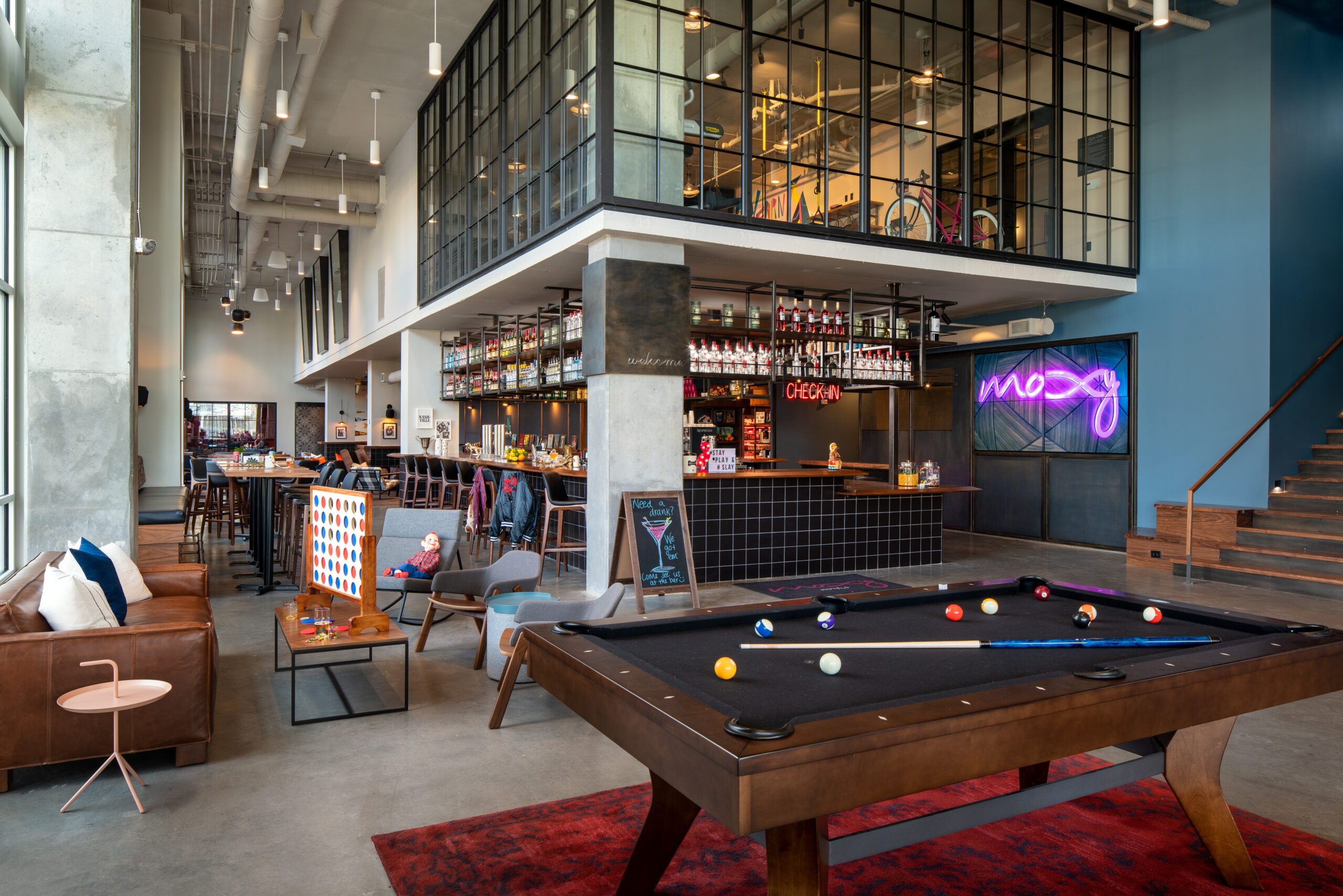 MZA designed the architecture and interior design of Moxy Hillsboro Village, a vibrant mixed-use development with 130 hotel rooms, apartments, retail, and parking. To tap into Nashville's creative energy outside of its famous music scene, MZA turned to the Enlightenment-era salon for inspiration, designing spaces to encourage gathering, interaction, and interesting conversation. Luxurious seating, games, and a bar at the core set the stage for engaging communal spaces. Local Nashville fabricators Ferrin Ironworks and Southern Lights Electric contributed to the project's Nashville roots with custom steel and lighting elements. With its inviting design and robust local flavor, Moxy Hillsboro Village provides visitors with both an authentic and immersive Nashville experience.