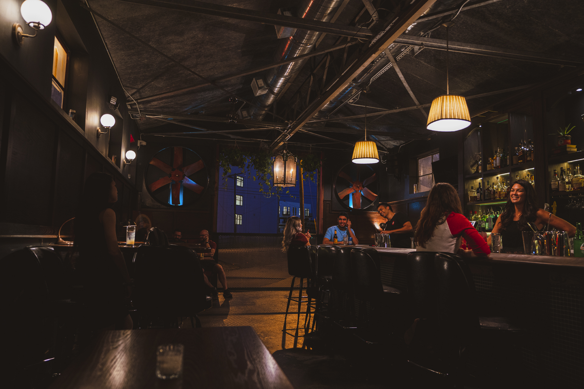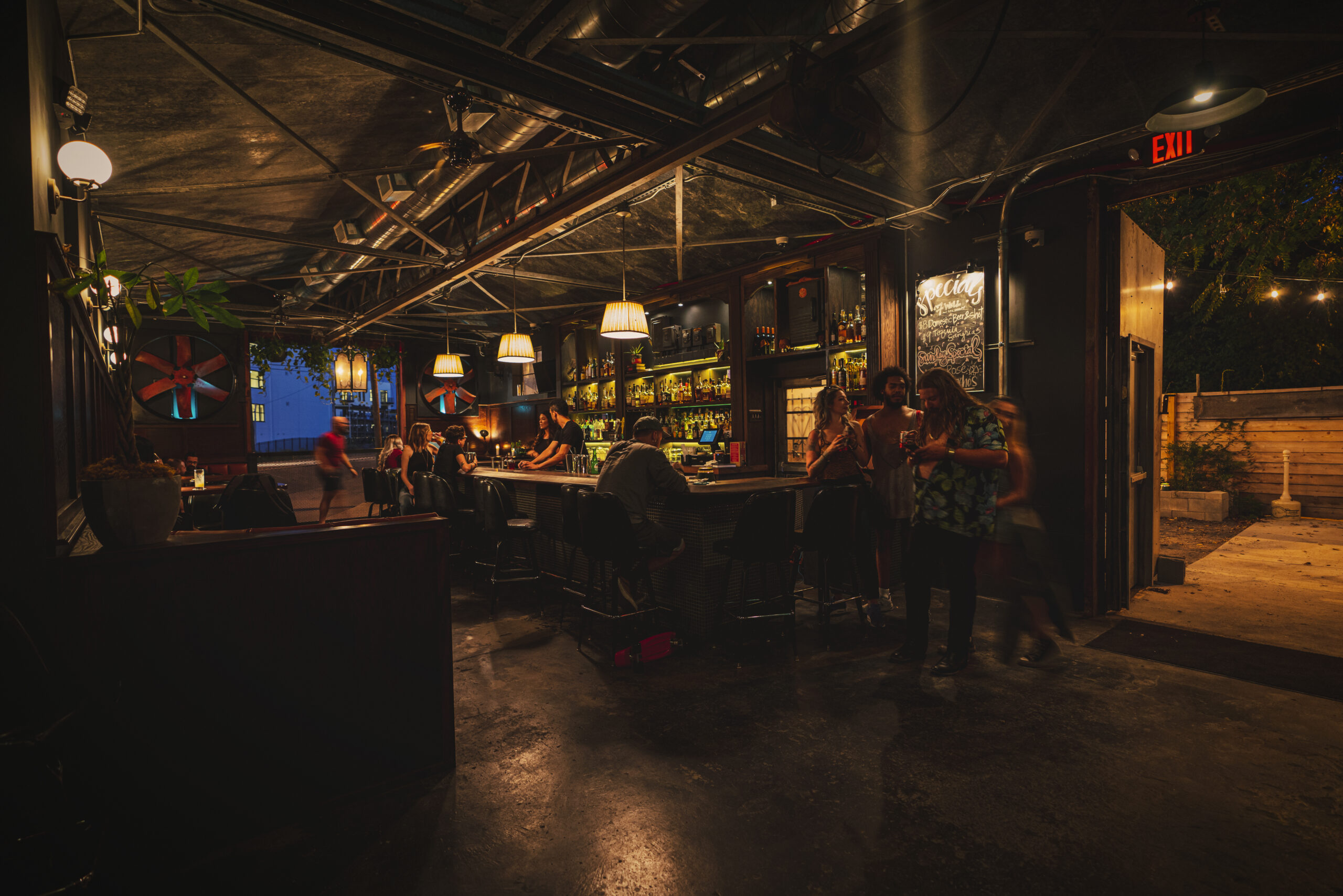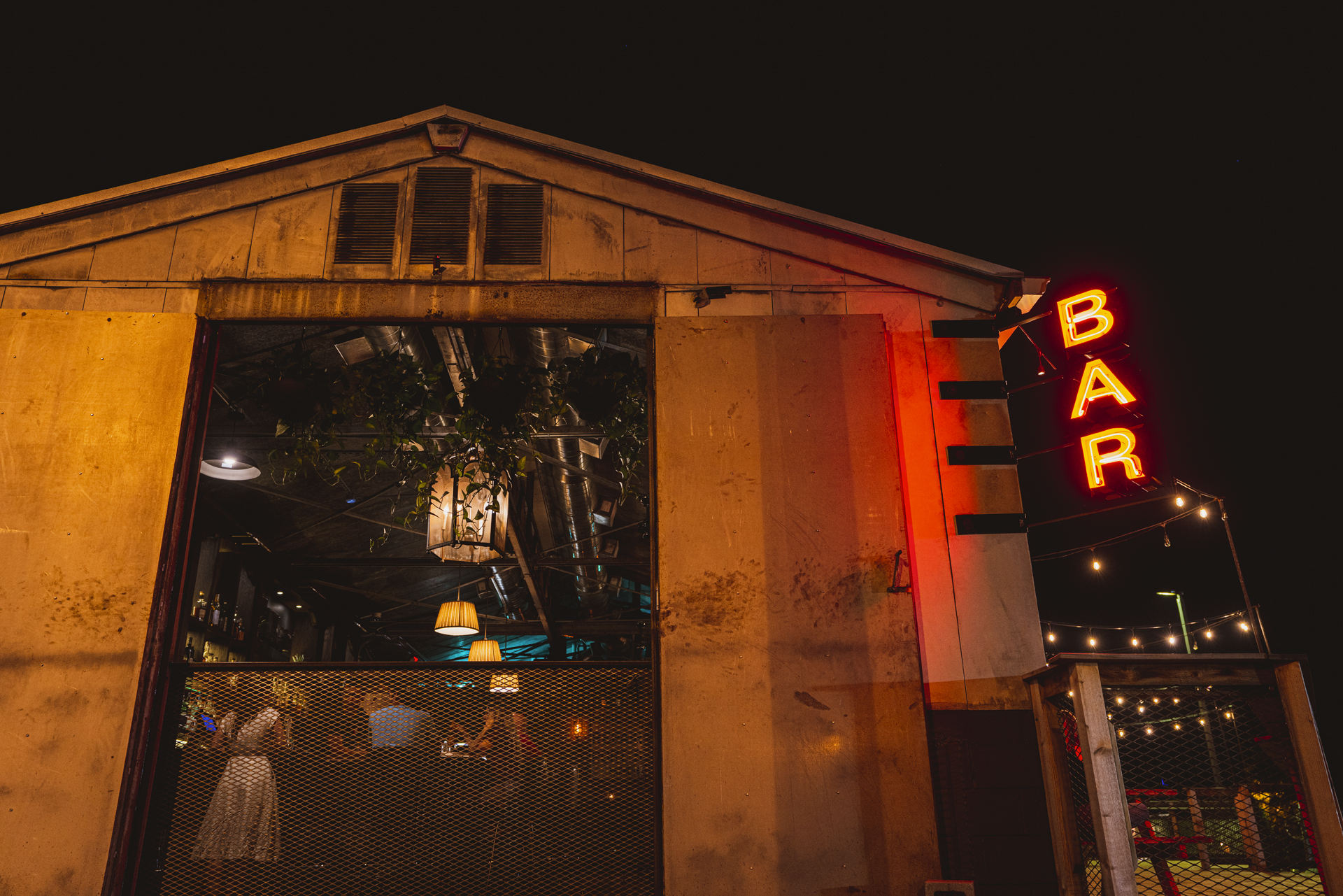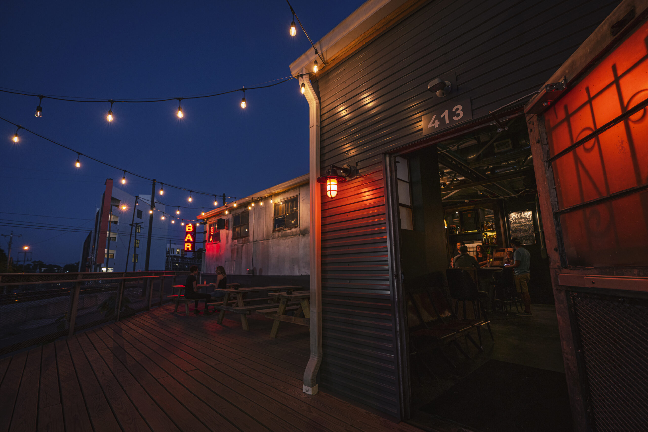Jamie and Bryan Kenney envisioned converting a gritty, old welding shop in Nashville's offbeat Wedgewood-Houston district into Never Never, a cozy bar and restaurant free of the constraints of time. MZA appreciated the building's industrial nature, opting to preserve original features like the massive doors that once accepted massive equipment. To overcome challenging site slopes, MZA constructed a raised front patio, with dramatic entries and picturesque vistas over neighboring railroad tracks. Attractive wood patios now soften the initial metal and concrete exterior, providing cozy, inviting areas. Never Never offers a singular, timeless experience, with locals appreciating a perfect escape from the stresses of daily life.
