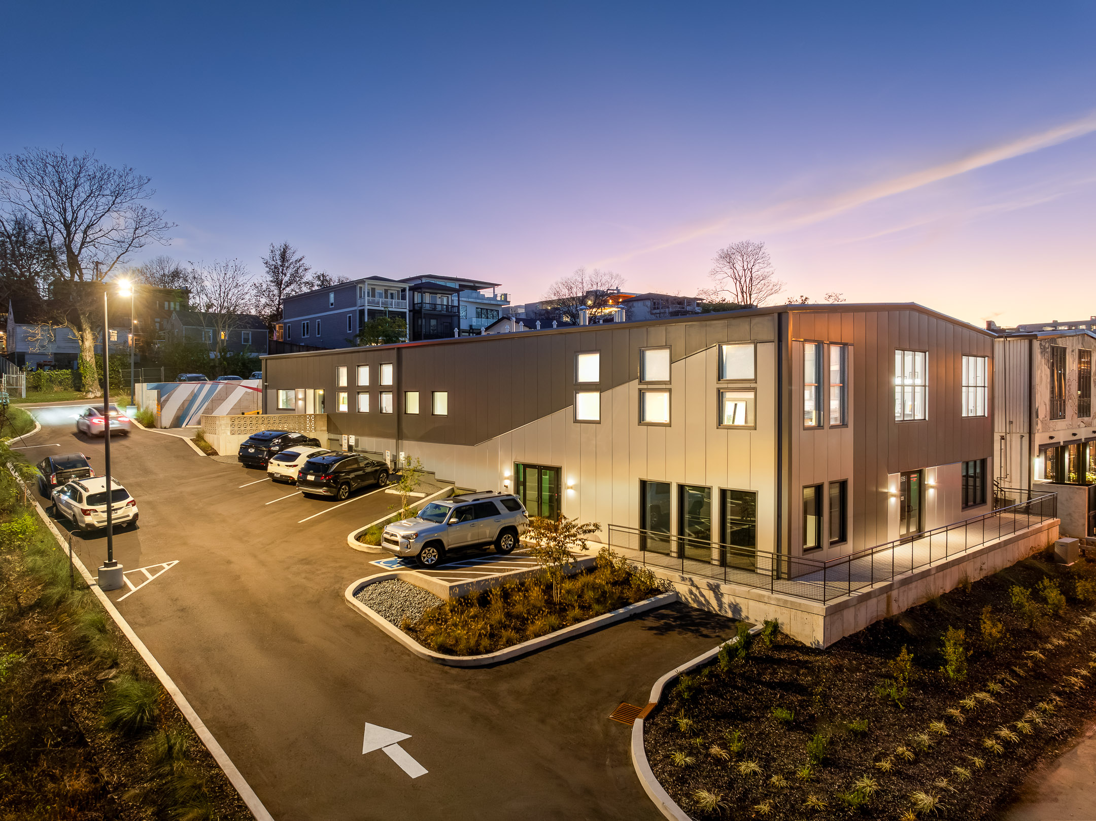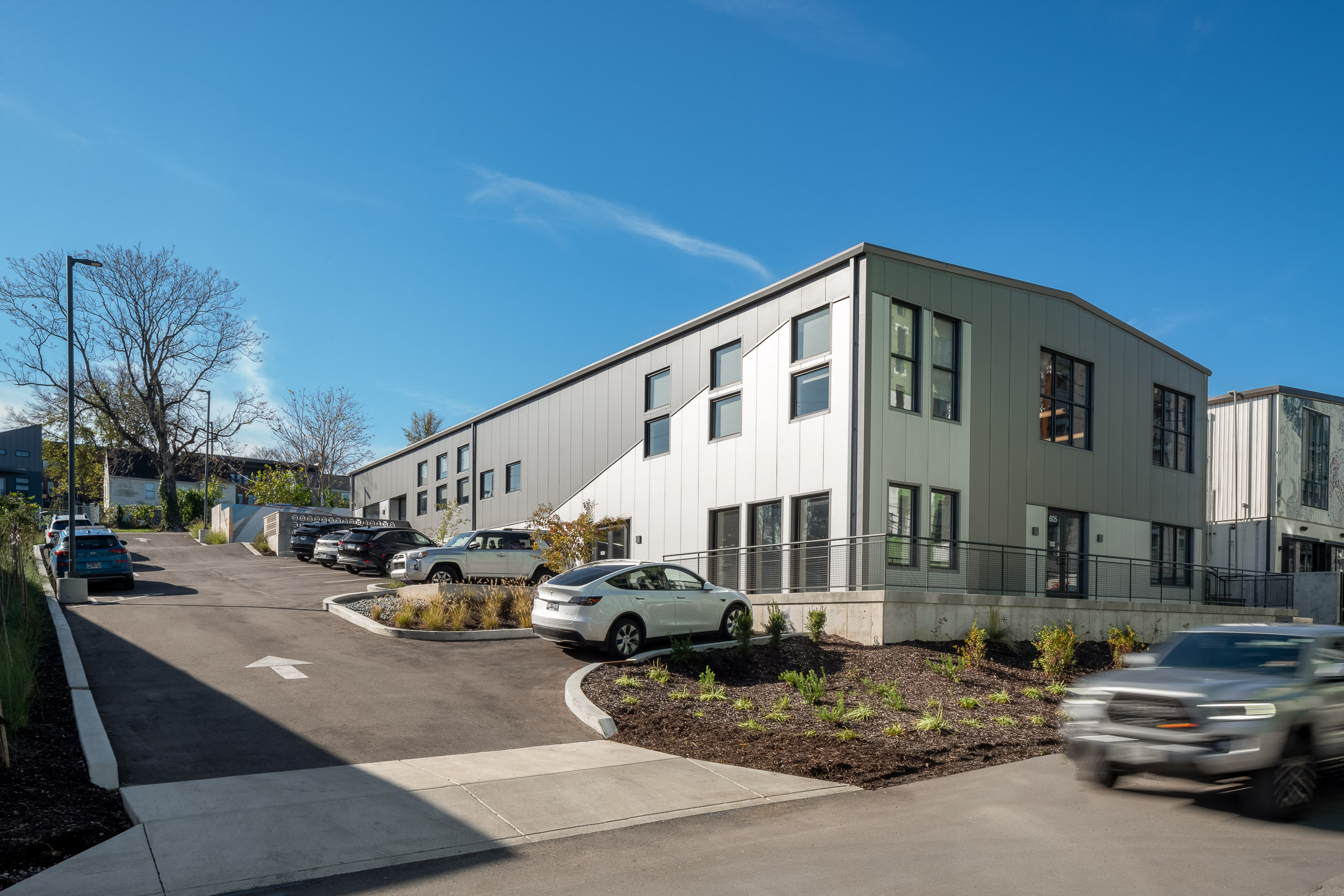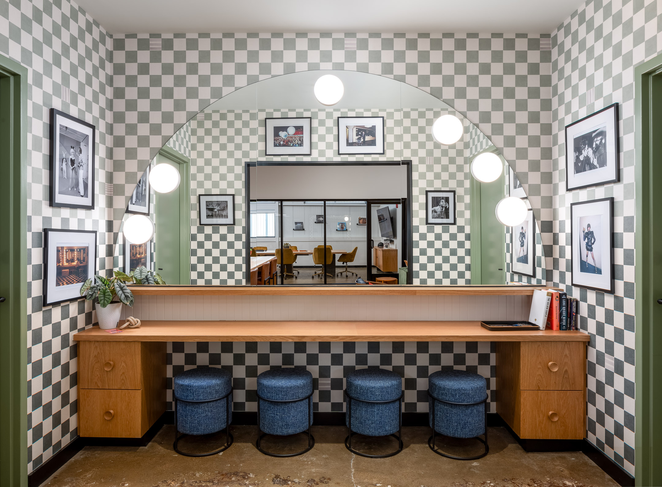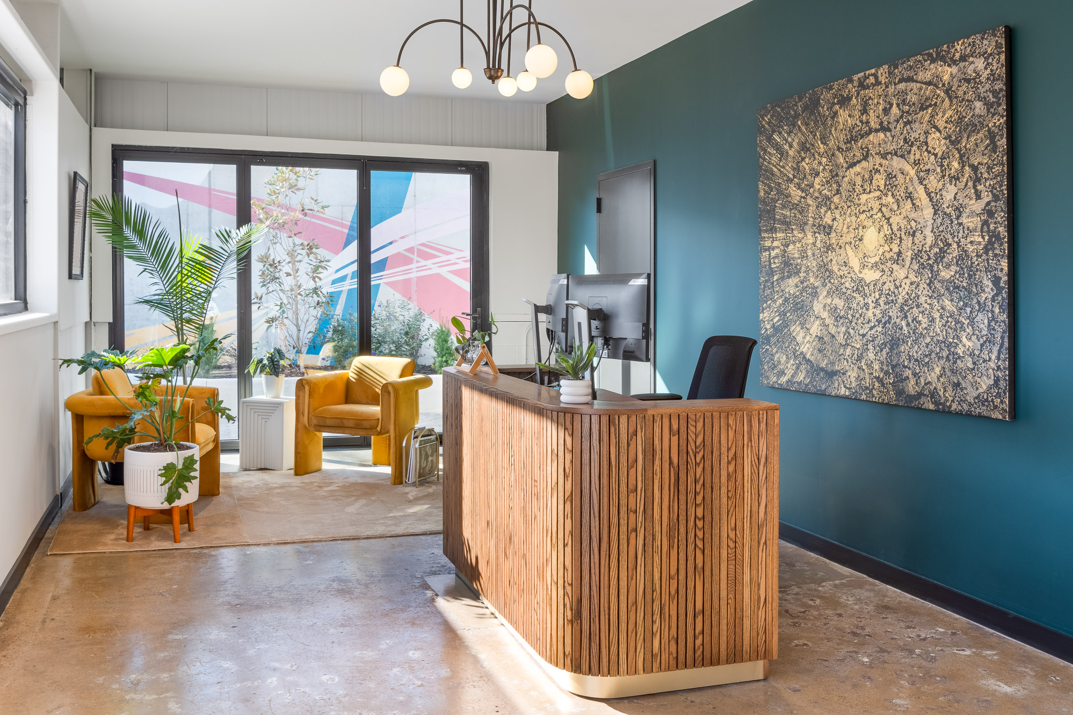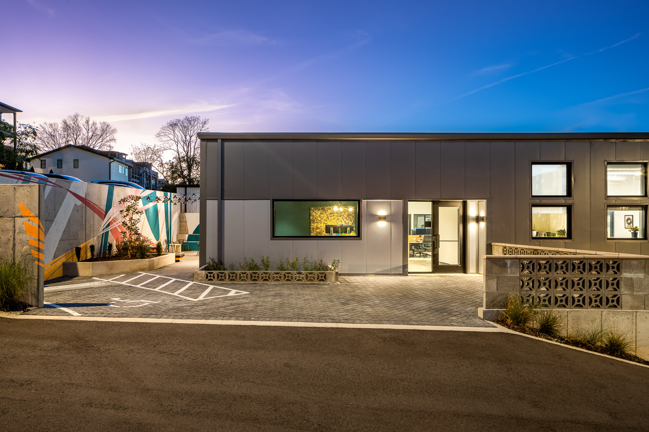 PSBM, a management firm that serves creatives, asked MZA to convert an 8,000-square-foot Nashville warehouse into a headquarters that is both professional and personality-filled. MZA left the original steel skeleton of the building in place and updated the envelope with energy-efficient panels, preserving its industrial aesthetic. PSBM's offices occupy the top floor, where glass partitions offer acoustic separation without losing daylight. Exposed concrete and metal textures are juxtaposed with fresh new smooth finishes to create a refined but rugged appearance. An outdoor patio is surrounded by a mural, done by Adrien Saporiti, and allows room for team meetings and creative refueling. A white-box tenant space and future expansion suite are also housed in the building, giving PSBM some breathing room. The result is a smart, responsive workplace that captures the diverse energy of clients they serve.