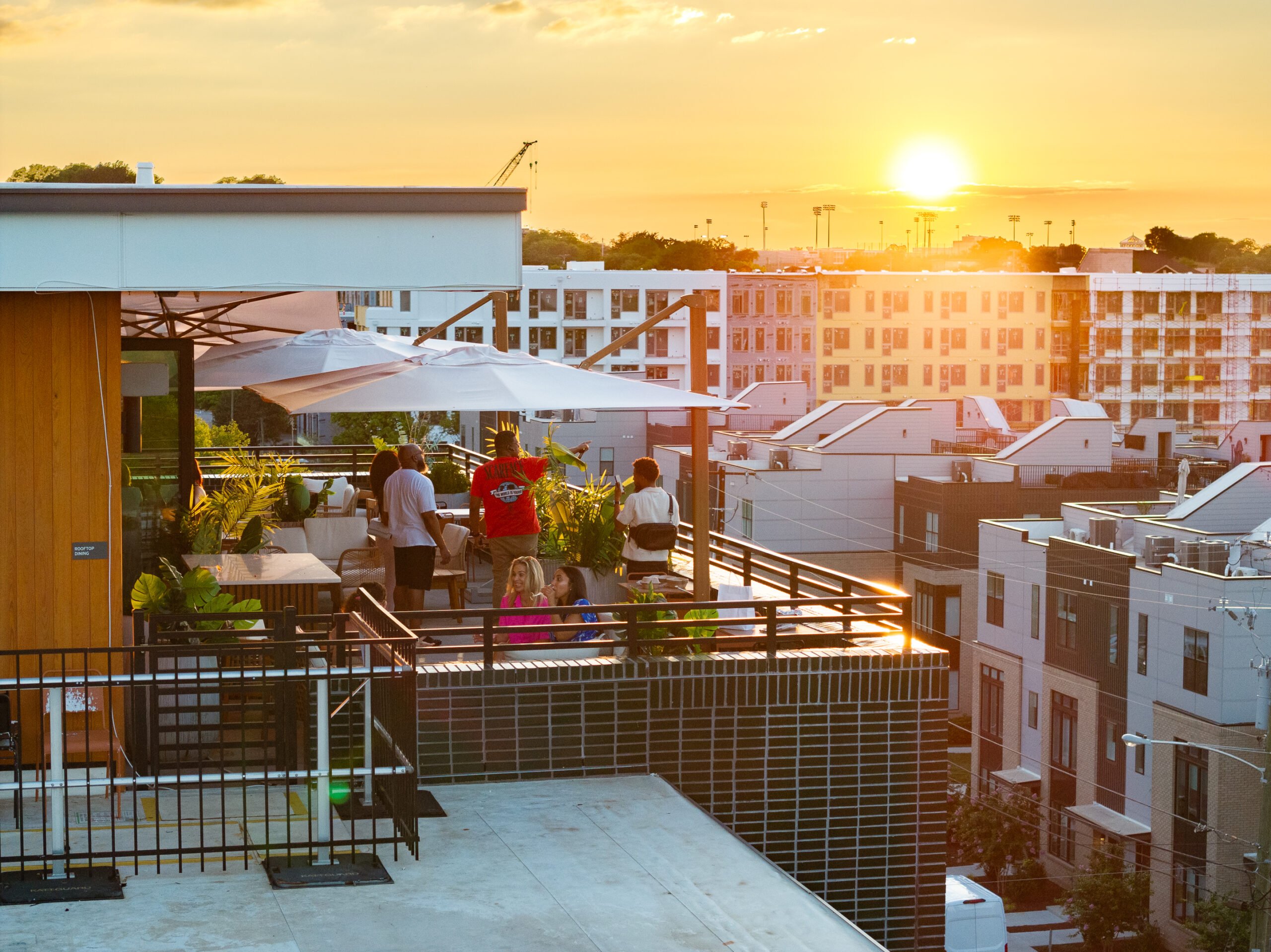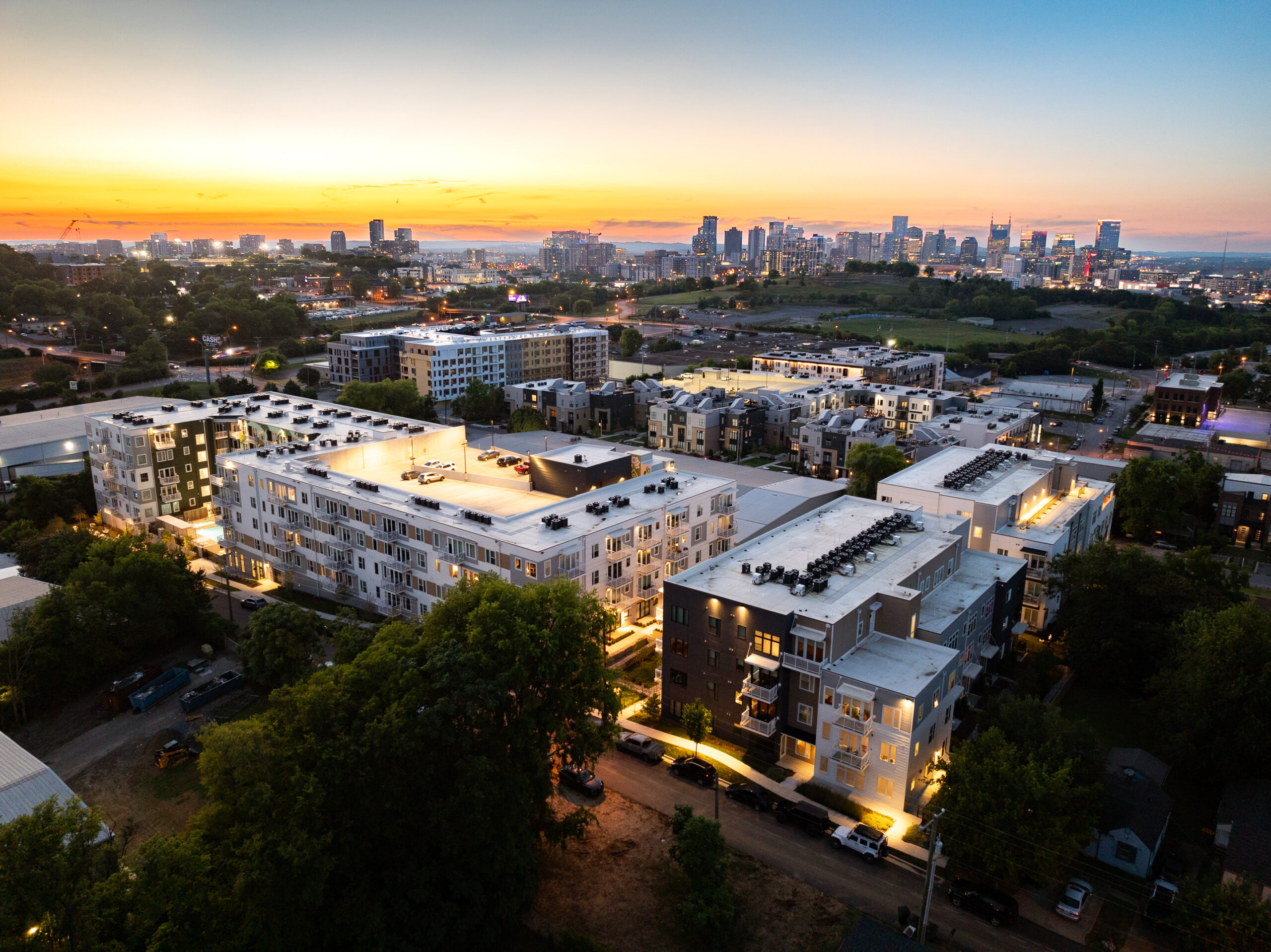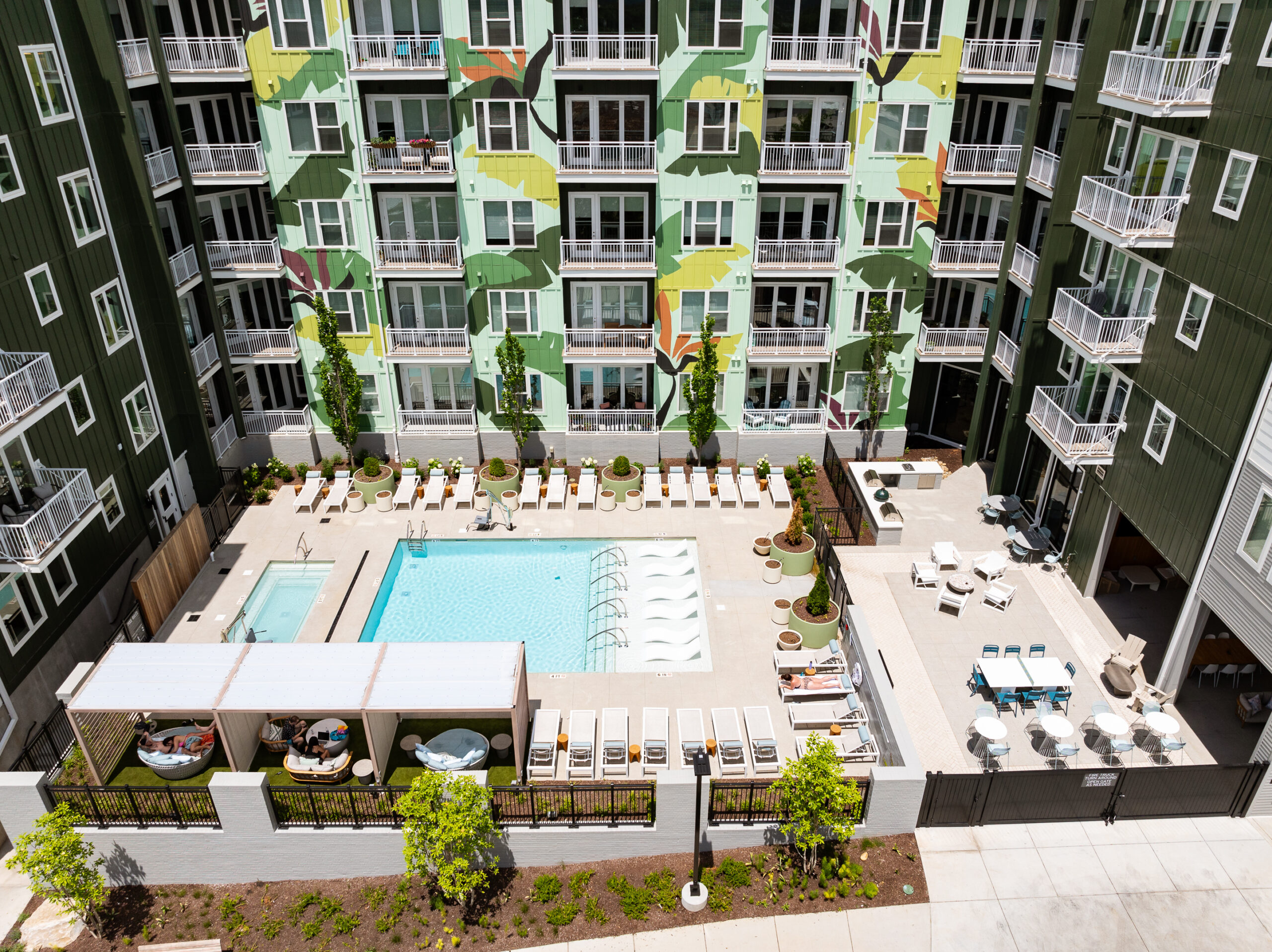 In collaboration with EOA Architects and Hawkins Partners, MZA envisioned Queens to bring new energy and new neighbors to Wedgewood-Houston. Just a stone's throw from MZA's own office, the mixed-use project consists of 220 apartments, eleven live/workspaces, and a community restaurant with rooftop bar at Hagan and Hamilton. MZA collaborated with the SNAP neighborhood association and Councilmember Colby Sledge to make sure the project fits in the creative, residential DNA of the block. The design also transforms a dead-end section of Moore Avenue into a public green, where long-time residents and newcomers can greet one another. Queens intertwines housing, local commerce, and outdoor space in a way that unifies the neighborhood and respects its heritage.