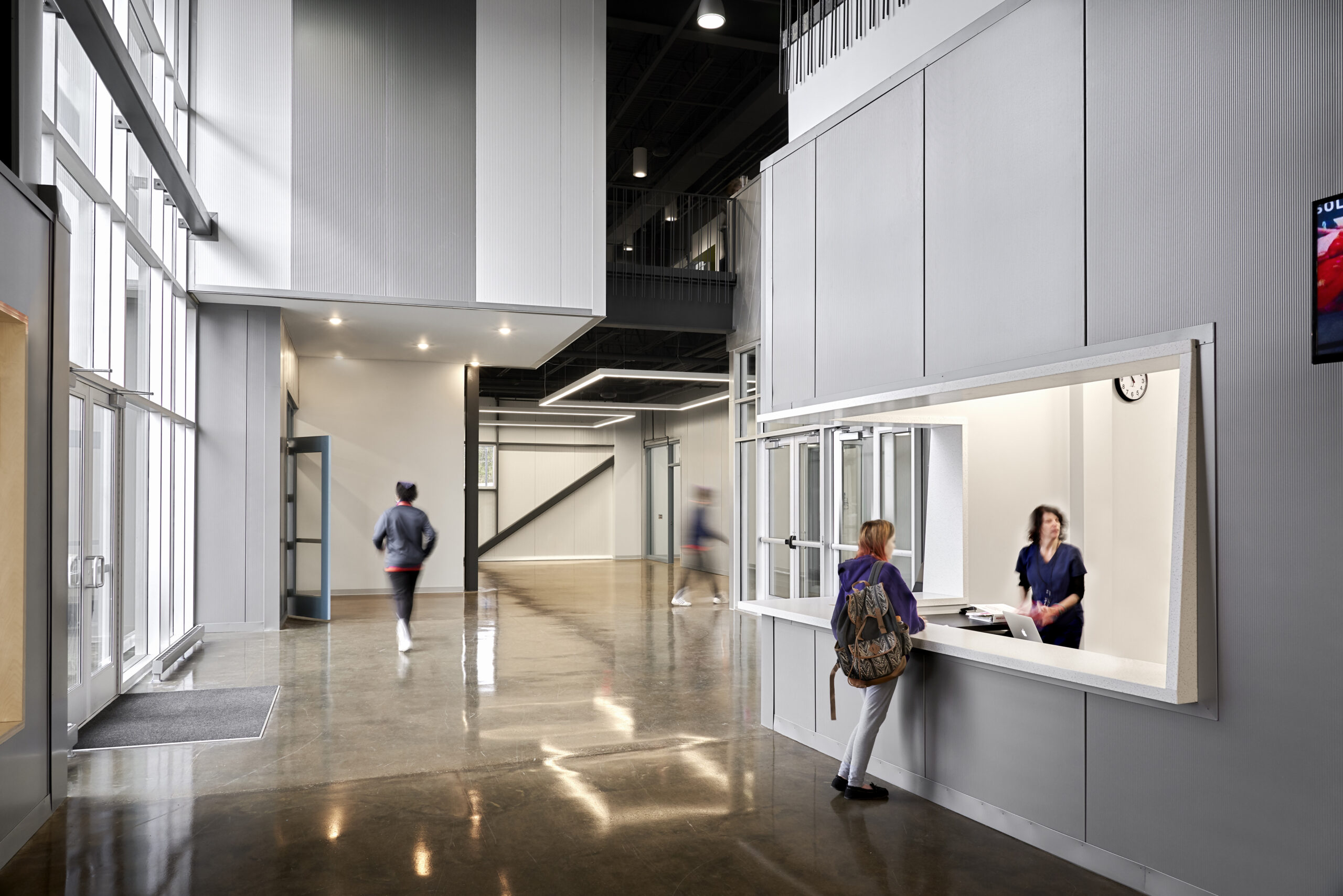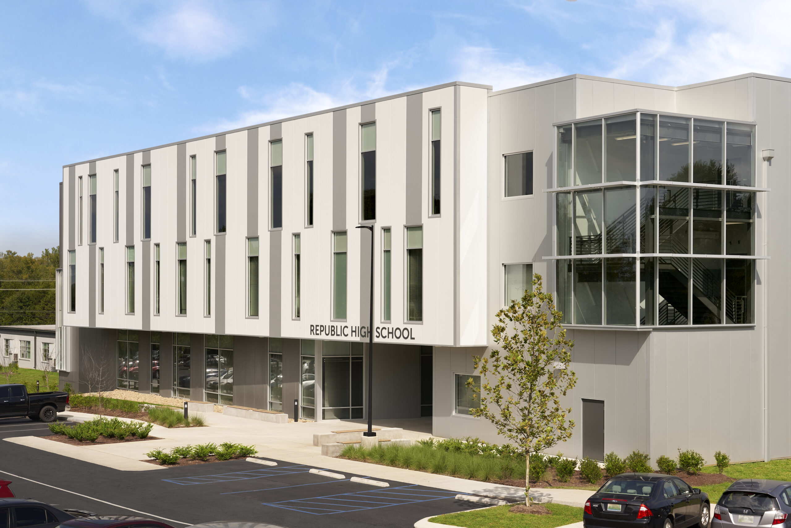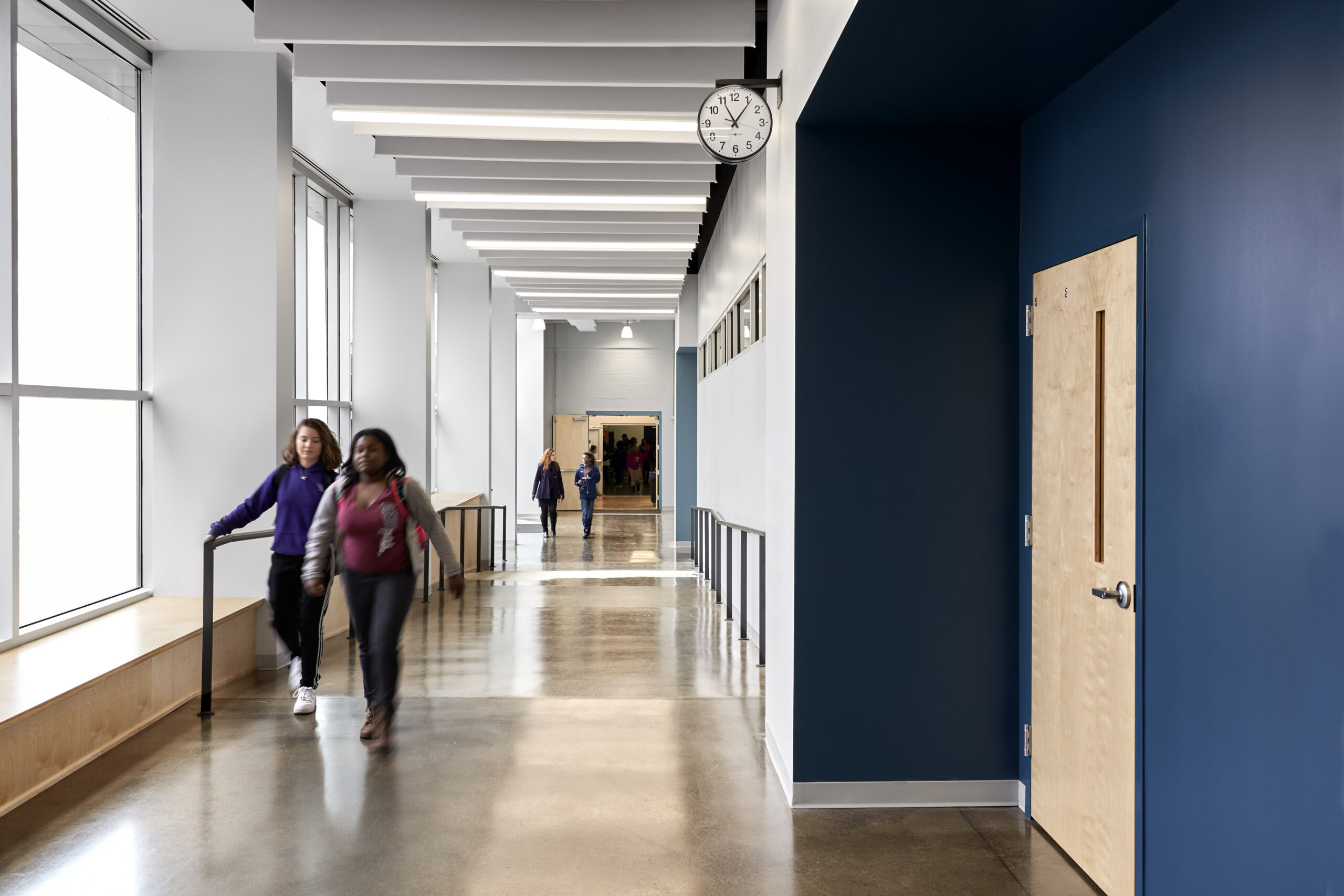 In 2015 the MZA was hired to develop a master plan for expanding the charter school’s facility from one with capacity for a single freshman class to a true 9-12 campus housing 1100 students. The school occupied a single story 1960’s building that had seen a number of additions throughout the decades resulting in a disparate series of partially connected buildings. The architect’s master plan yielded a multiphase design that stitched the buildings together with a new three-story South Wing. An interior courtyard was created to serve as the new heart of the campus, providing daylighting and interior views from the new common areas and classrooms. The existing buildings were retrofitted with new mechanical and fire suppression systems and the site’s stormwater design upgraded from its nonexistent mid-century state.