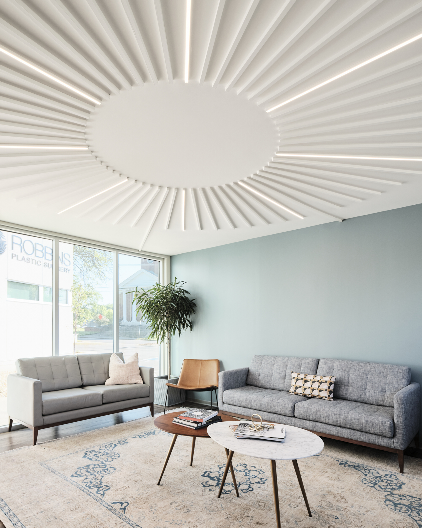 MZA transformed a former prosthetics lab, originally conceived by us in the early '90s, into a high-gloss, modern clinic for Dr. Chad Robbins Plastic Surgery in Nashville. The challenge was to fit the specialized original layout into a friendly medical facility that balanced clinical precision with patient comfort. MZA responded with the addition of an upgraded new surgery suite, renovated exam rooms, and streamlined exterior cladding that revitalizes the building's image while being true to our original design. The renovated clinic provides patients with a warm, sophisticated environment that captures Dr. Robbins' high standards, infusing new energy into the space and adding a positive dimension to the character of the district.