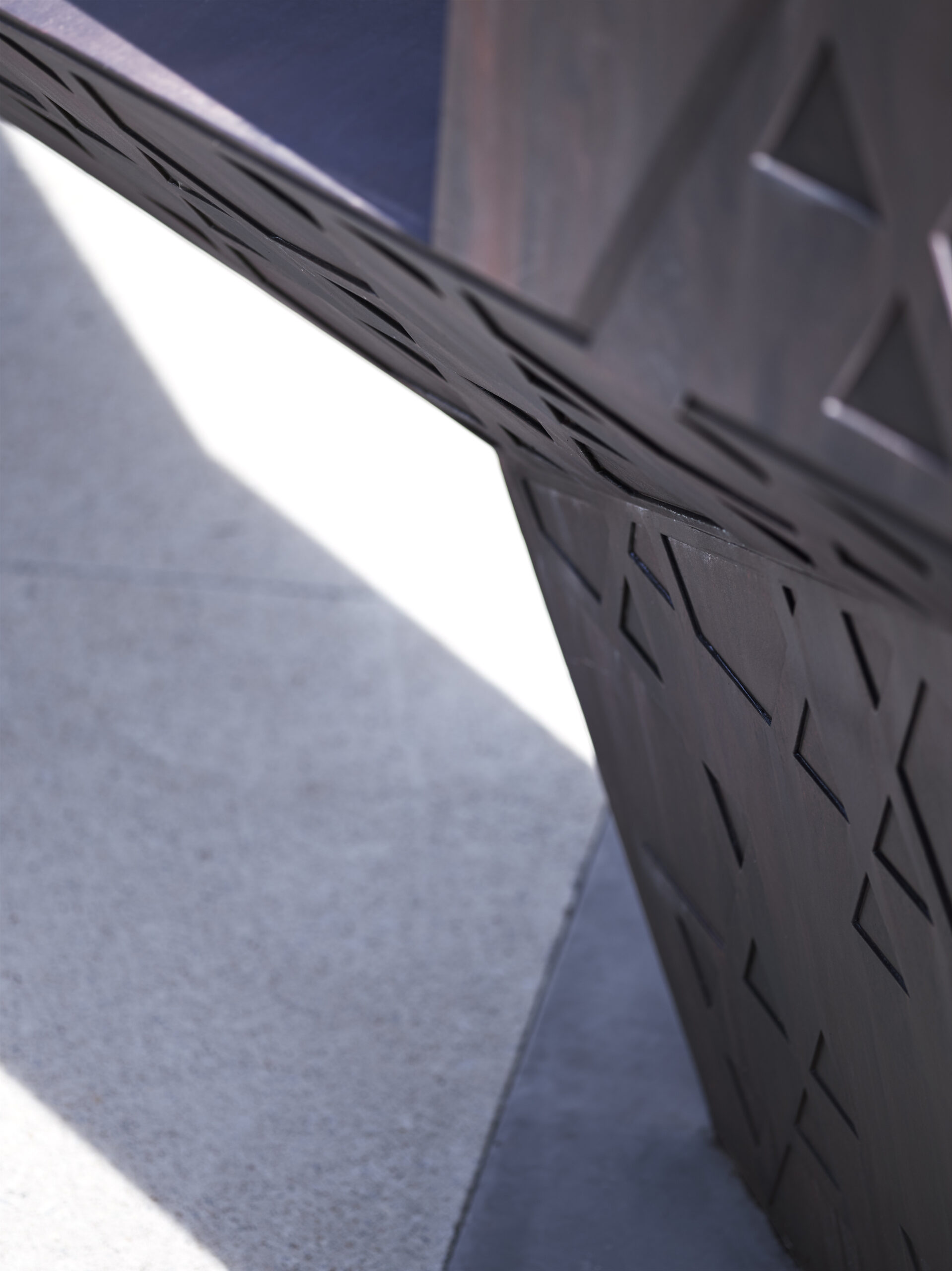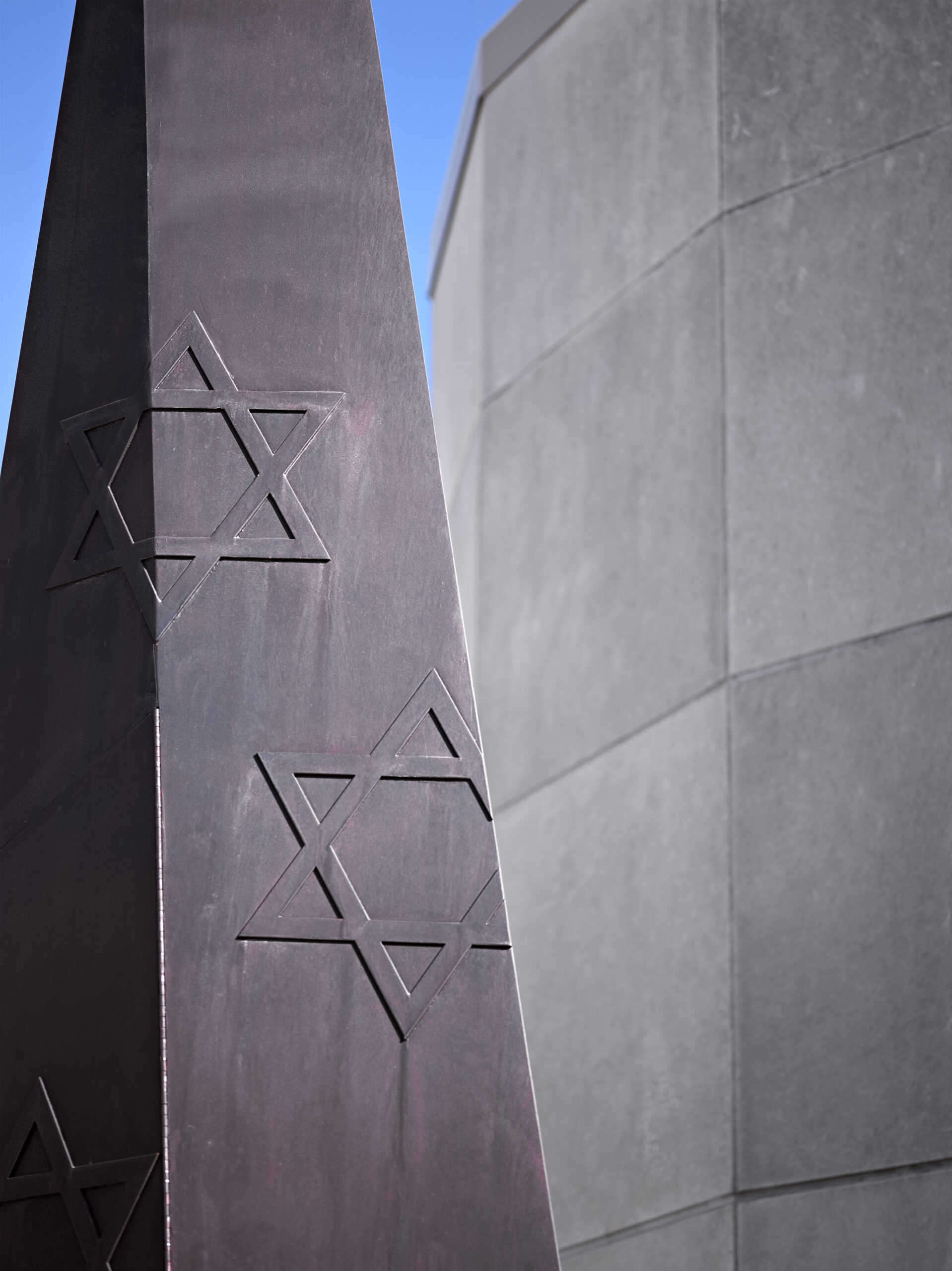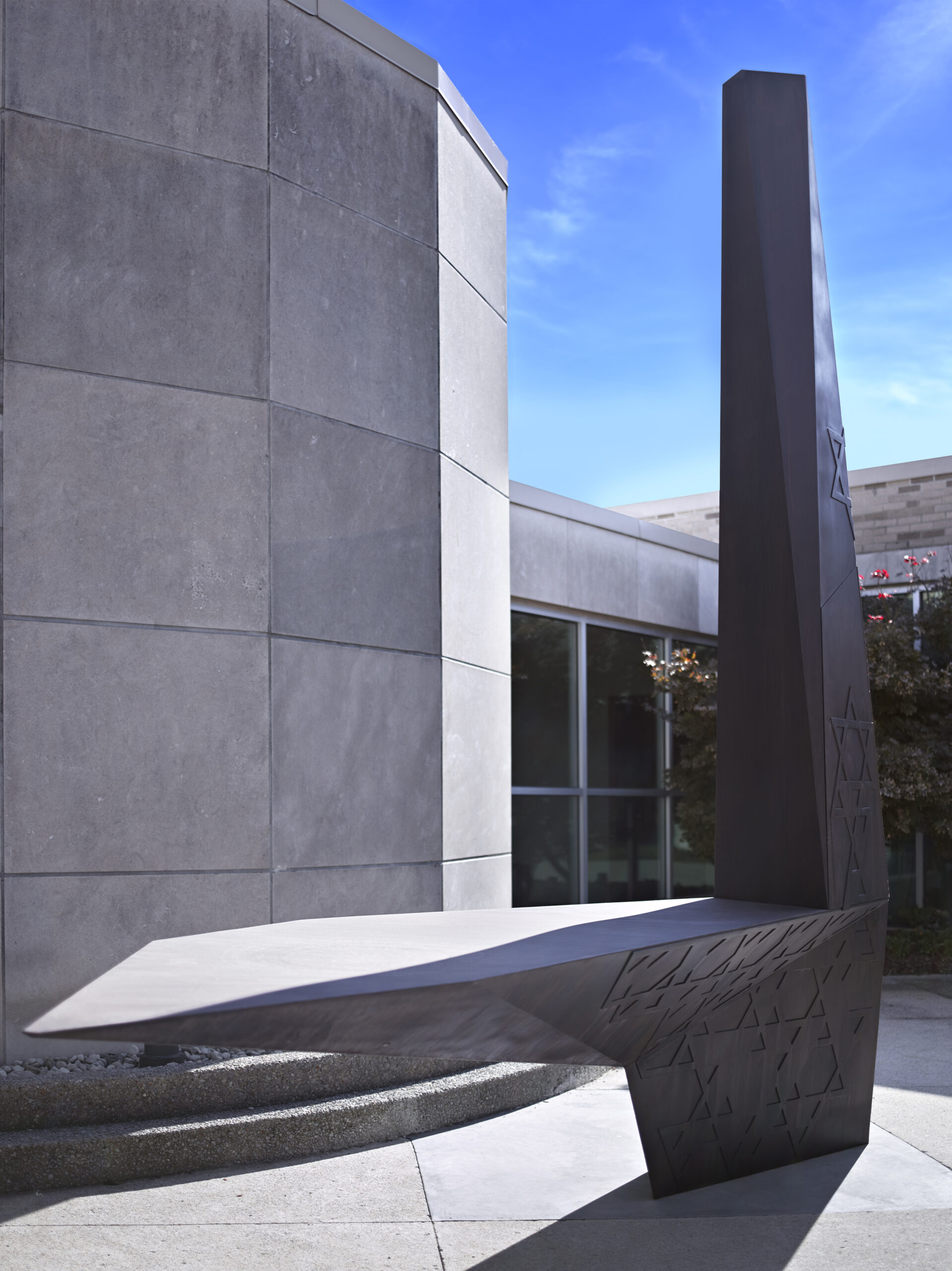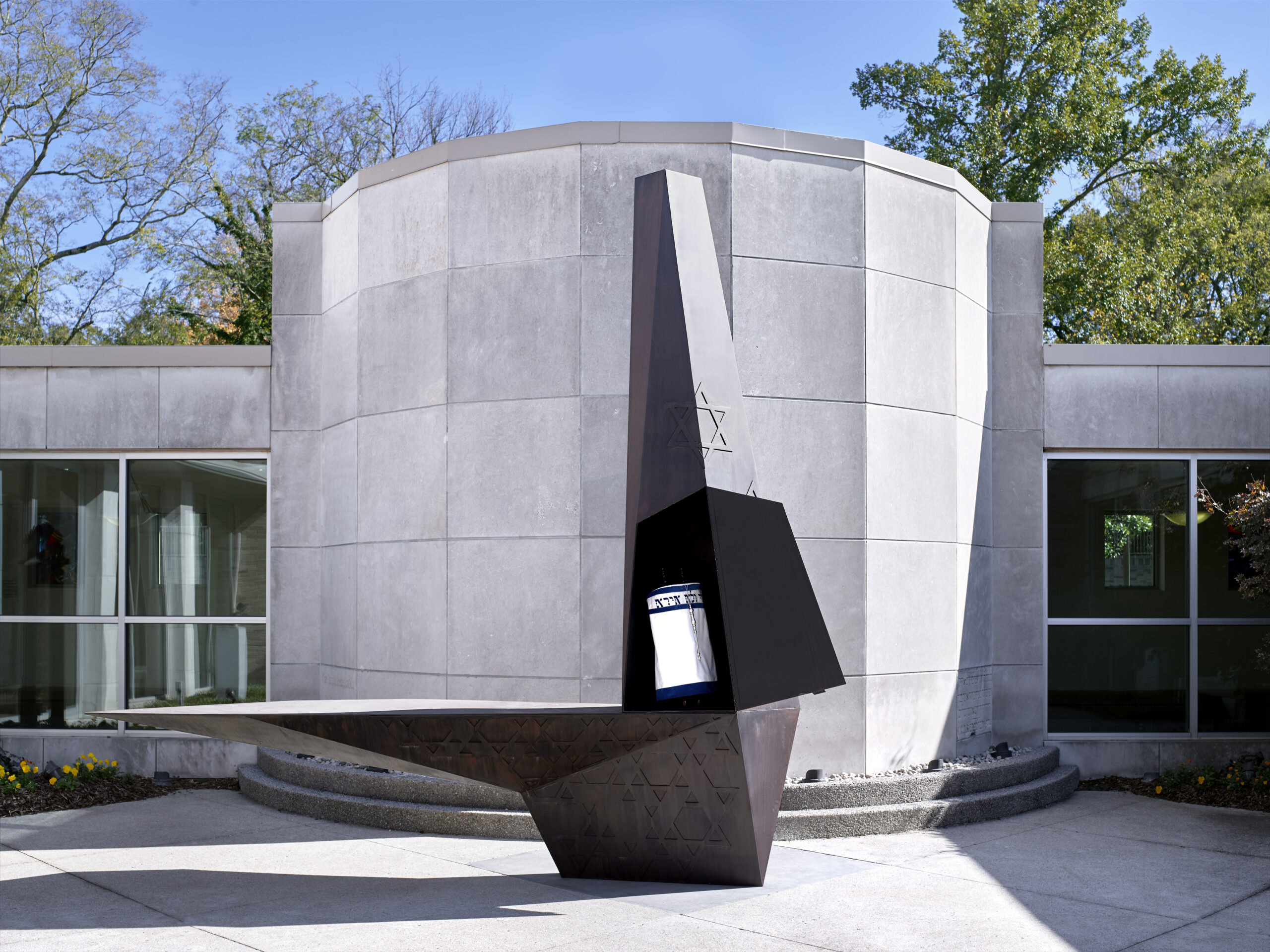 MZA was commissioned by The Temple, Congregation Ohabai Sholom in Nashville, to create a sculptural, dramatic Ark and Bimah to support outdoor worship. Asked to create a powerful point of attention that would be a balance to the temple courtyard and be eye-catching, MZA designed a kinetic form rising out of the earth and directed towards the sky, symbolizing the tree of life. Crafted in steel with a warm patina finish that complements adjacent natural stone, the sculpture's faceted surfaces stunningly reflect sunlight, creating a captivating dance of shadows. The outcome is an enduring centerpiece that enriches the congregation’s outdoor worship by enhancing their bond with nature and their sacred space.
