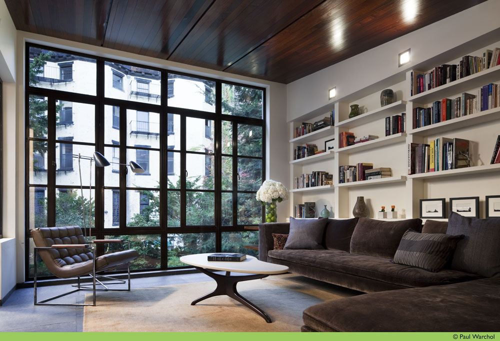 MZA was brought in to salvage a part of the history of this 1851 townhouse and to make fundamental changes to its configuration, adapting it to the clients' modern lifestyle. The structure was purchased as a 3-family residential building and converted to single-family use during the wall-to-wall, cellar to roof gut renovation. The property is under the NYC Landmarks Preservation Commission's jurisdiction and, therefore, limited modifications were permitted to its primary facade. The rear facade of the building though had been modified several times over the house's history and retained little of its original context. In the 1920s, a rooftop penthouse had been added onto the original 4 story building which, rumor has it, served as a speakeasy of sorts during the prohibition.